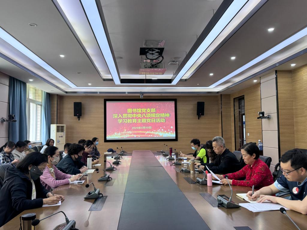 4月10日下午,学校图书馆开展深入贯彻中央八项规定精神学习教育主题党日活动暨警示教育大会。图书馆全体教职工参会,会议由图书馆馆长郭京主持。