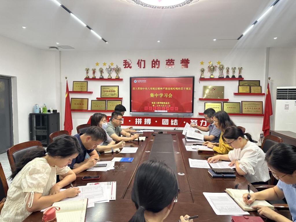 6月12日下午,学校食品工程学院党总支在学院会议室开展了深入贯彻中央八项规定精神、严禁违规吃喝的集中学习会。此次会议由党总支书记王延东主持,学院全体党员教师参与。