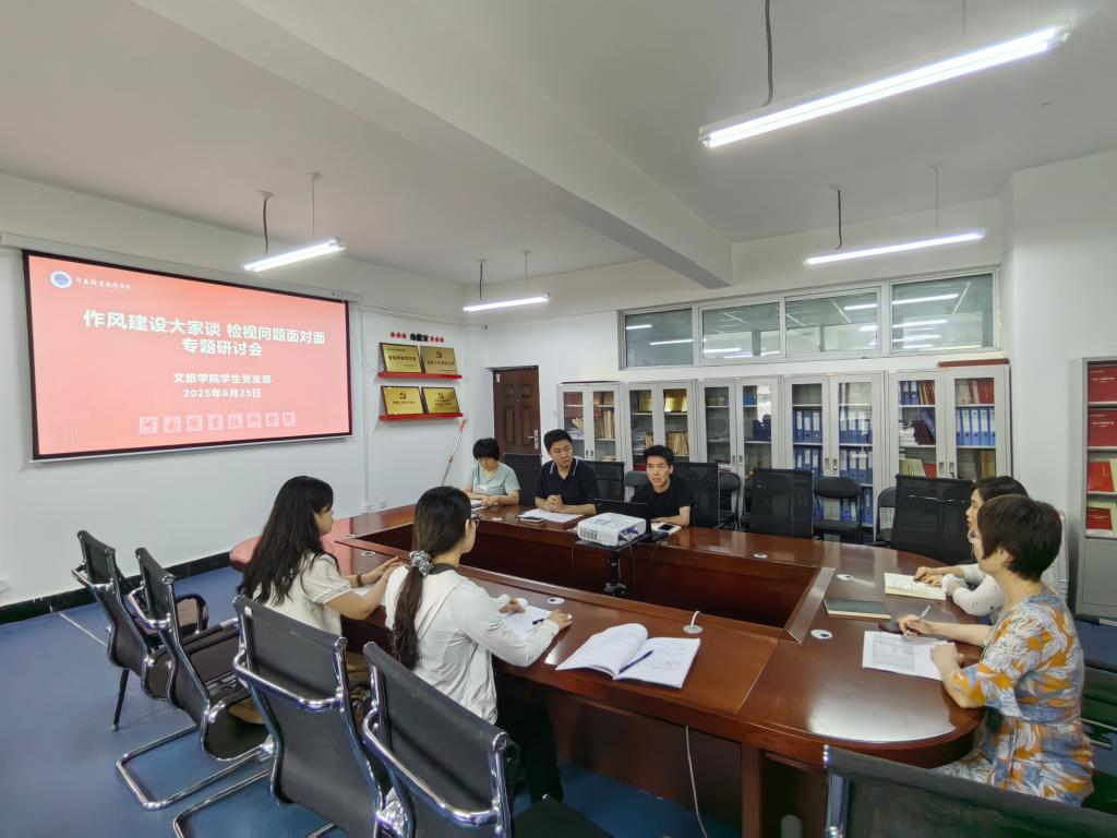 6月26日下午,学校文化旅游学院学生党支部在笃行楼630会议室开展 “作风建设大家谈 检视问题面对面”专题研讨活动。学生党支部全体党员参会。