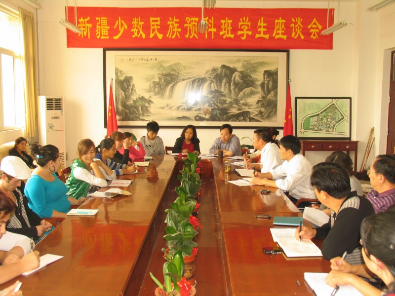 座谈会气氛热烈融洽,与会领导、老师和同学们进行了深入的交流与沟通。新疆少数民族学生们纷纷表达了他们入校后的真实感受,对学院提供的关怀和帮助表示感谢,同时也提出了在学习和生活中存在的一些具体困难,如英语和数学理论基础知识不扎实、清真食品品种单一、宿舍缺少通讯设备等。各部门领导对学生们提出的问题给予了逐一解答,并提出了相应的解决方案。在学习方面,将会针对民族班学生的知识水平制定专门的人才培养方案,合理安排课程设置和考核标准。在生活方面,尊重同学们的民族习惯,尽可能多为同学们提供品种多样、价格公道的清真食品,并将及时为同学们的宿舍安装电话,便于同家人的联系,尊重同学们的民族信仰,积极做好民族节日的各项保障工作。建立民族学生工作例会制度,及时了解和帮助少数民族学生在学习和生活上的困难。