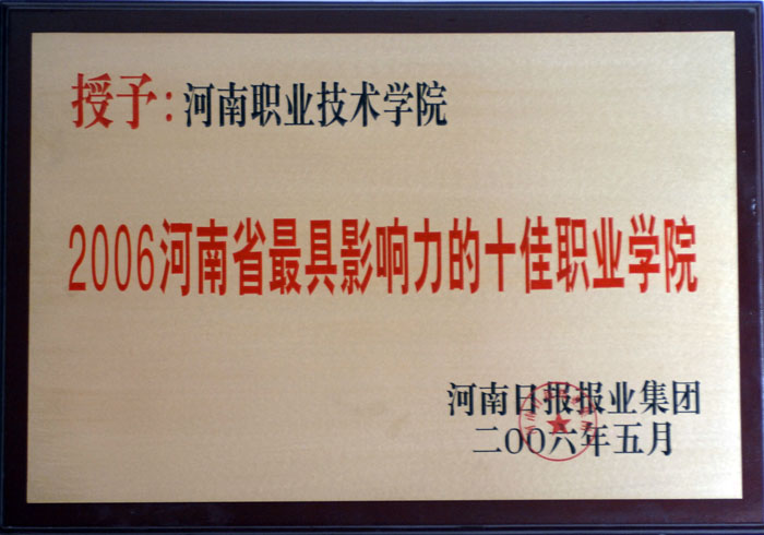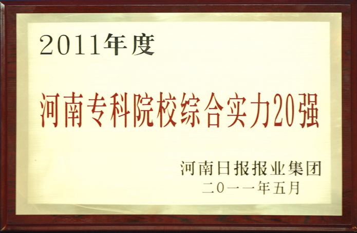为了更详细地了解河南大中专院校的整体办学水平,进一步加强自身软硬件建设,全面贯彻落实《国家中长期教育改革和发展规划纲要》精神,创新教育管理体制和人才培养模式,为中原经济区建设提供强大的人才支撑和智力支持,展示河南教育发展成果,河南日报报业集团于4月6日至4月26日,在《河南日报》及大河网上开展了“2011河南高校综合实力”大规模的读者调查活动。在社会的监督下,经过读者及网友的投票、评选,我院荣获“河南专科院校综合实力20强”单位。这是我院继2006年获“河南省最具影响力的十佳职业学院”、2008年“河南公众最满意的十佳高职高专院校和2010年获“河南考生心目中最理想的高校”之后,又一次获此类殊荣。这是广大考生和社会各界对我院办学特色和办学成绩的充分肯定和高度认可,进一步提高了学院的社会知名度和美誉度。