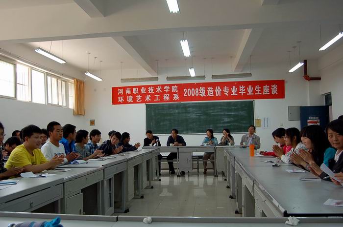 4月15日下午,环境艺术工程系召开了08级工程造价专业毕业生座谈会,了解该专业毕业生实习阶段的工作、学习情况,同时听取他们对专业建设和发展的意见和建议,系领导及工程造价专业教研室的教师及40余名毕业生代表参加了会议。