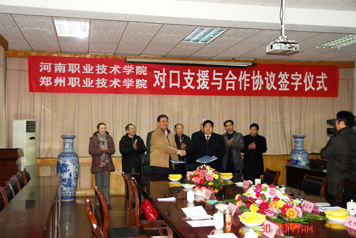 2010年12月30日上午,在郑州职业技术学院,我院与该院对口支援合作协议签字仪式隆重举行。我院副院长彭志宏与郑州职业技术学院领导一同出席了签字仪式。