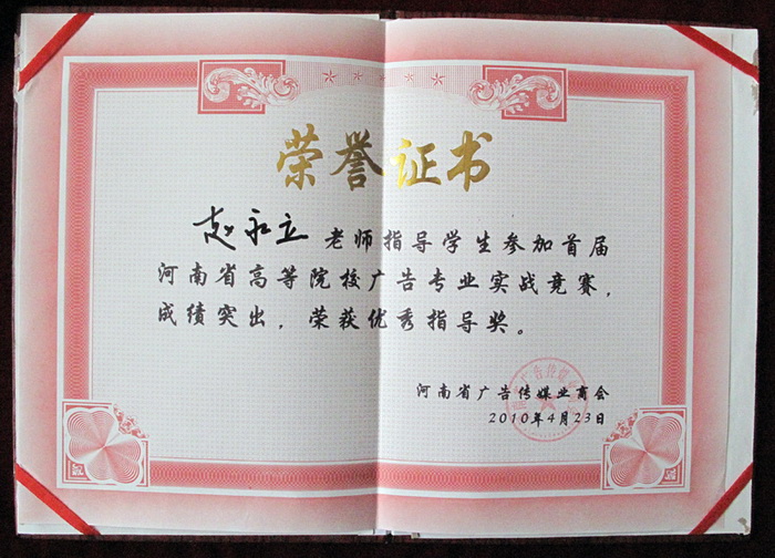 本届大赛经过一个多月的初赛后,有郑州大学、河南财经学院、河南职业技术学院等十所代表队参加决赛。我院广告策划专业08级马莹同学以《理想引领广告未来》的演讲进入复赛后,又以《中国创意,智领天下》为题,以声情并茂的台风和简练优美的语言,荣获广告演讲比赛三等奖;该系广告策划专业08级马莹、赵洋等同学组成的代表队,经过周密的策划和形式多样的促销活动,获得本届高校广告专业实战比赛团体冠军,该系荣获了“优秀组织奖”,赵永立老师荣获商业实战环节“优秀指导奖”称号。