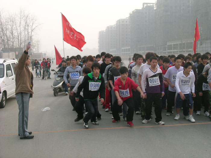 为进一步贯彻落实《全民健身条例》,丰富学生们的校园生活,增强学生身体素质,促进学校阳光体育活动的开展,学院于2009年12月24日下午在学院大门口举行了迎新年长跑比赛。