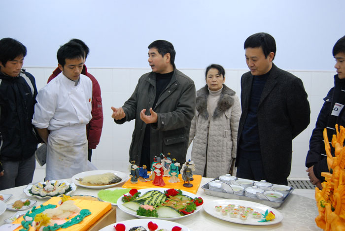 讲座结束后,李志顺大师还对旅游烹饪系即将参加河南旅游行业烹饪大赛的学生作品逐一进行了点评,并亲自示范操作。