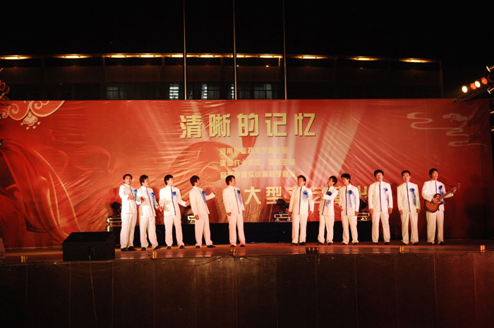 为庆祝建国60周年,活跃校园文化生活。9月28日晚,我院举行了以“清晰的记忆”为主题的庆祝建国60周年文艺演出。省人力资源和社会保障厅机关党委专职副书记白杨林、院党委书记杨寿亭、院长王爱群、副院长彭志宏和苏斌、工会主席郭自川等出席,与教学系部和行政部门负责人及万余名师生一同观看了演出。