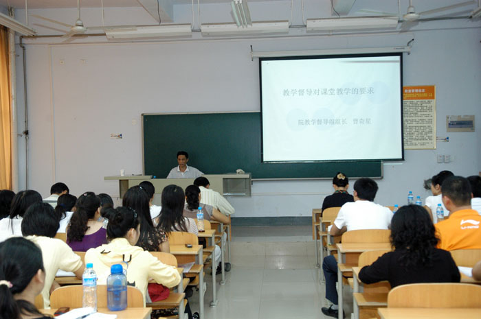 为促进学院新进教师尽快掌握教育教学技能,适应教学工作,在王爱群院长、彭志宏副院长的深切关怀和各教学单位的大力支持下,我院第七期青年教师培训班于2009年8月31日正式开班,9月2日顺利结束集中授课。