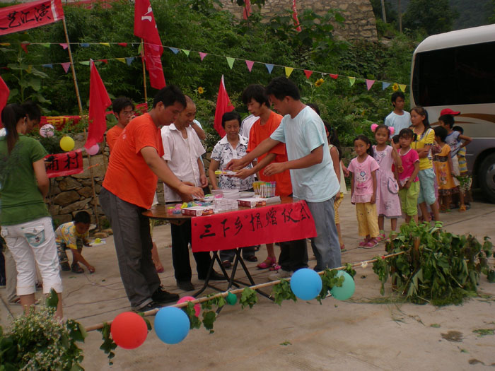 今年的暑期社会实践活动以“推进两大跨越,建设美好中原”为主题,结合专业特色,组成义务维修分队、群众家访分队和义务支教分队开展志愿服务活动。 活动期间,义务维修队员冒着酷暑先后走访农户百余家,免费为村民维修电风扇、影碟机、电视机、电话机、洗衣机等多种电器,深受村民好评。群众家访队员每天都在泥泞崎岖的山路上走访农家,与乡亲们一起劳作,闲话家常,详细了解当地的自然资源、风土人情,并给老乡们讲解一些简单实用的农业知识和技术。义务支教队员通过为留守儿童讲授书本知识、生活常识以及举办娱乐活动等形式,扩大了他们的视野,丰富了他们的知识。支教活动结束后,队员们为柳铺村小学捐赠了一些学习及体育用品。