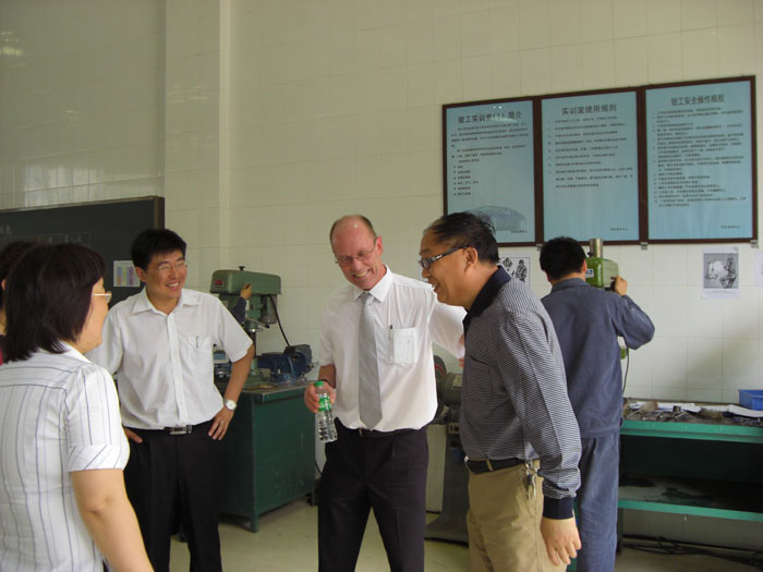 德国工商联合会专家代表有德中双方负责人狄威海和梁薇,他们在院长王爱群、系主任肖珑陪同下,对德中机电特色班第二届AHK机电一体化专业技术工人毕业考试Ⅰ进行视察指导,德国专家对我院考场准备工作做了充分肯定,对与我院合作表示非常满意,希望今后继续加大合作力度。考场工作人员在考场内准备急救箱和时钟,并摆放了漂亮的布娃娃。王院长对该系倡导国际化、人性化的考场给予了充分的肯定,希望我们要借鉴“德中机电特色班”成功办学经验,扩大办学规模,为我院示范高职建设探索新路子。同时他还认真查看了考生考试情况,对考生的考试状态比较满意。