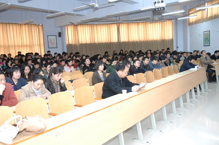 王卫平处长首先对第一批教师说课活动的开展情况进行了总结通报。接着,四位说课教师从课程的总体设计、教学程序、教材分析以及教学手段与方法等几个方面进行了精彩解说,说课课件图文并茂、内容详实,赢得了大家阵阵掌声。说课观摩结束后,王处长又对《河南职业技术学院关于开展首届教师说课活动的通知》(院字〔2009〕4号)进行了详细解读,使学院教师对文件有了更为全面和深入的认识。