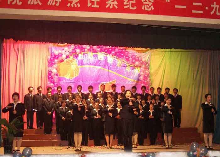 为激发当代大学生的爱国主义热忱,增强广大团员青年的忧患意识和“爱国荣校,振兴中华”的使命感和责任感,对广大同学进行爱国主义、集体主义教育,丰富校园文化生活,12月8日晚,旅游烹饪系隆重举行了纪念“一二•九”73周年大合唱比赛。院党委书记杨寿亭,院长王爱群,副院长张琇、彭志宏,工会主席郭自川等院领导与相关部门的负责人观看了大合唱比赛。