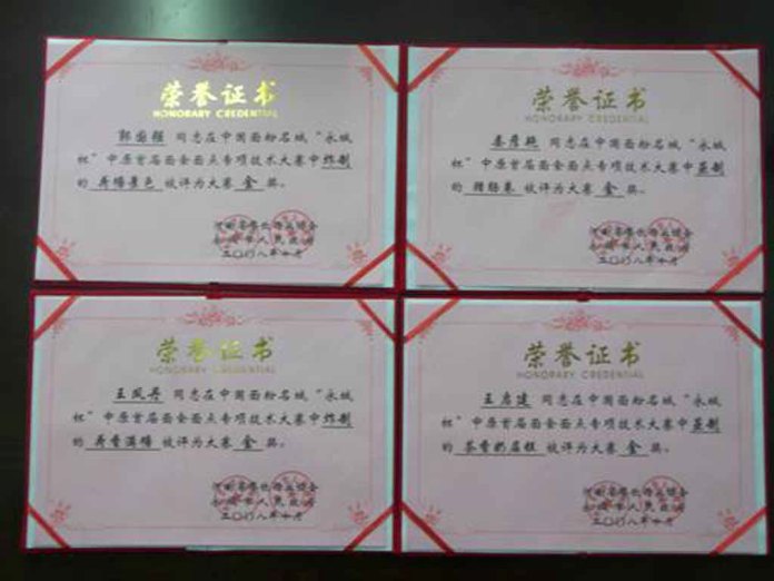 根据河南省餐饮行业协会秘书处的通知,本届大赛按面点熟制技法和面点装饰技法,设立了蒸制面点、煮制面点、炸制面点、煎制面点、烤制面点、烙制面点、炒制面点及面塑和盘面装饰九项比赛项目。大赛为省级A类比赛,设立个人单项奖,每个竞赛项目设奖项为:金奖、银奖、优秀奖。据大赛秘书处统计参赛选手达300余人次,共决出金奖作品50个、银奖作品20个、优秀奖作品10个。我系选派了3名教师和4名学生参赛,带去参赛作品15个。经过他们精心准备,认真比赛,最终以最佳状态获得了7金1银的优异成绩。