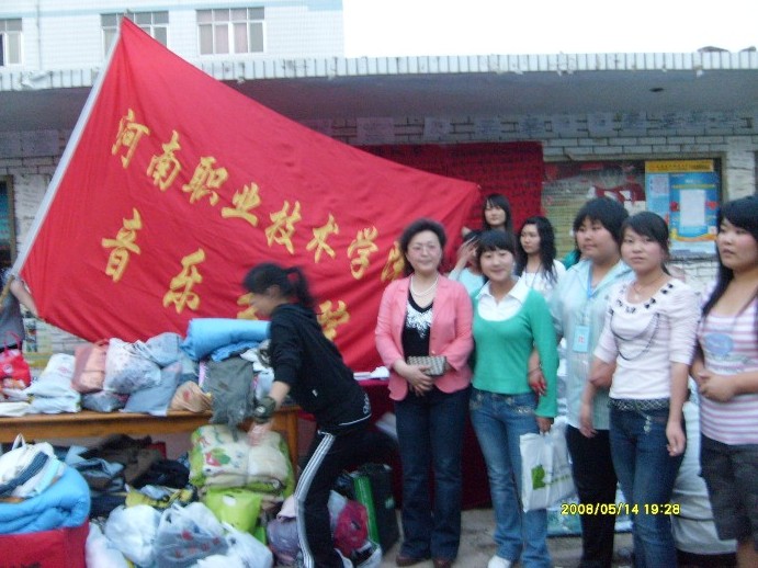 5月15日,在音乐分院团总支王达亮书记倡议下,分院在学生中组织了“国家有难你我有责、奉献爱心师生同行”的募捐活动。此次活动,共募得现金2746元,捐献衣物等3500件。这些钱物已于15日晚送往郑州市红十字会。