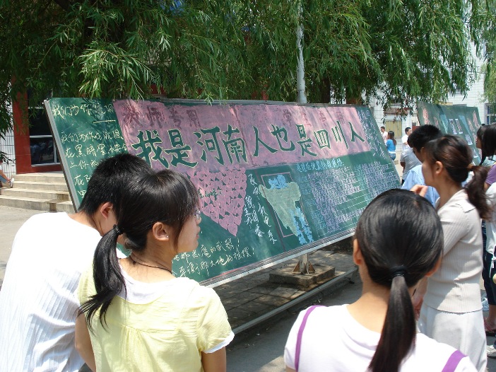 团委学生处于5月19日、20日分别在新、老校区组织了全院共青团员向四川汶川灾区募捐的献爱心活动。院学生会、青年志愿者大队和学生社团制作了大量的宣传海报、条幅及展板,号召全院学生用实际行动支援地震灾区重建家园。院党委书记杨寿亭同志冒着酷暑亲自到募捐现场进行动员。