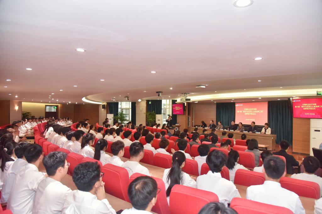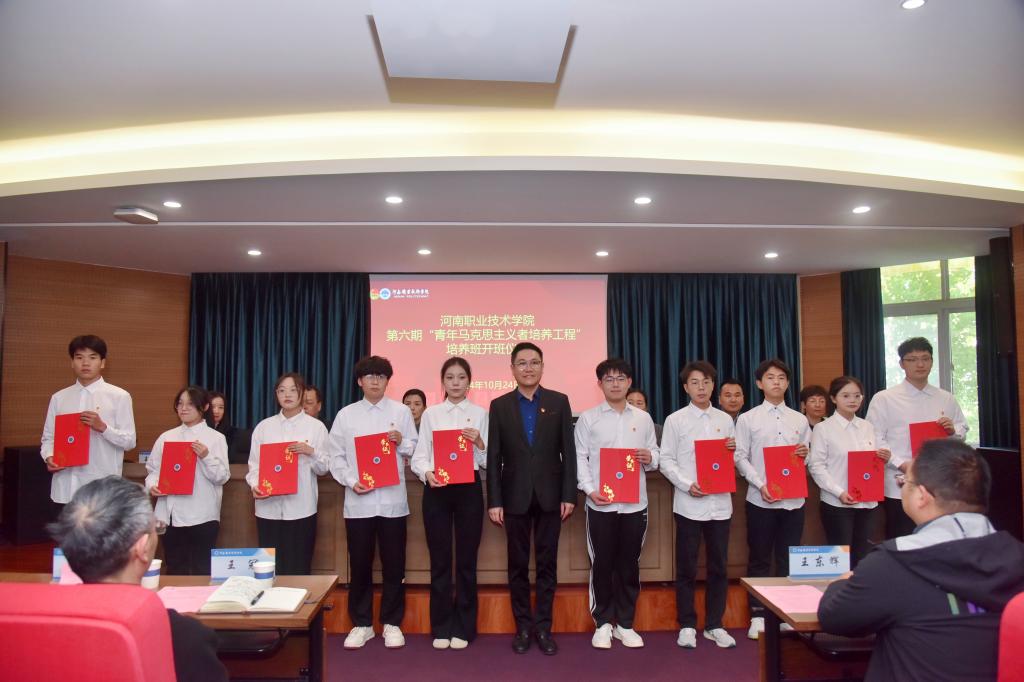 10月24日下午,河南职院举行第六期“青年马克思主义者培养工程”培养班开班仪式。校党委书记厉励出席开班仪式并讲话。校党委副书记、工会主席田华出席开班仪式。校党委委员、组织部部长杨华,党委宣传部、党委学生工作部、校团委和马克思主义学院负责人;各二级学院党总支书记、副书记、团总支书记及第五期青马班优秀学员、第六期青马班新学员近140人参加开班仪式。