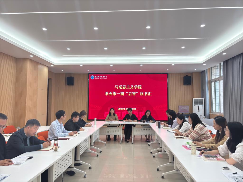近日,为进一步推动营造读经典、学理论、强素质、作表率的浓厚氛围,河南职业技术学院马克思主义学院开启了“启智”读书汇活动,活动以“重温马克思主义经典,深入学习习近平新时代中国特色社会主义思想”为主题,全体思政课教师共读《共产党宣言》和习近平总书记《论教育》等经典著作。