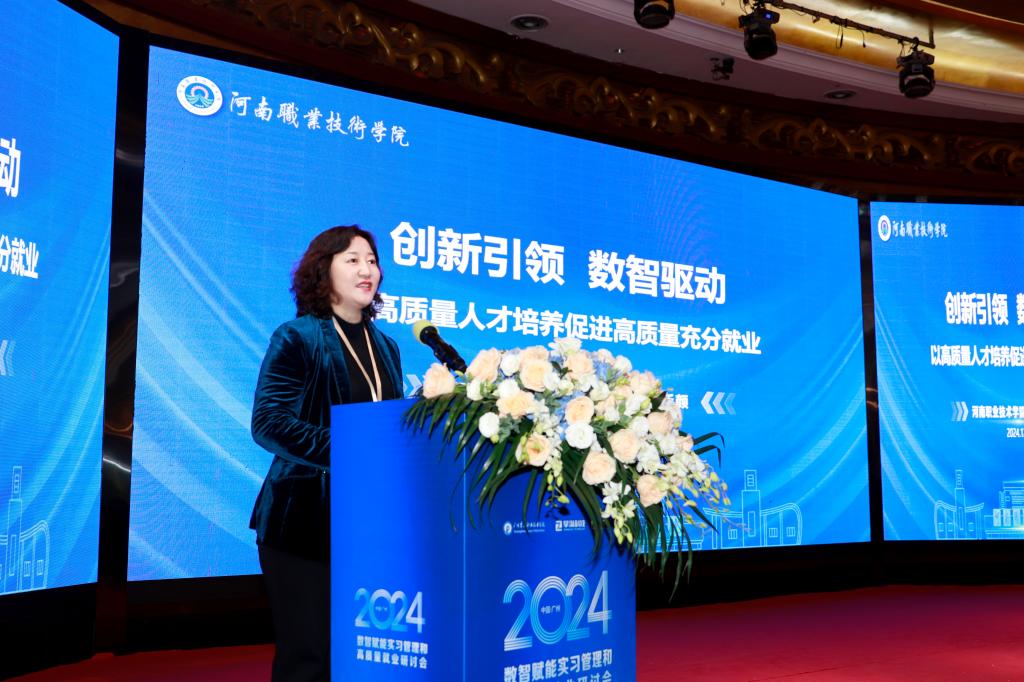 会上,夏新颜以《创新引领数智驱动 以高质量人才培养促进高质量充分就业》为题作专题报告。她从数智赋能高站位综合改革、数智赋力高水平人才培养、数智赋效高质量充分就业3个方面介绍了学校全面贯彻落实党中央、国务院,省委、省政府决策部署要求,紧盯国家区域发展重大战略和我省“7+28+N”重点产业链群,优化专业调整,创新人才培养模式,抢抓教育数字化新机遇,深入实施“三赋三促”智慧就业服务模式,以数据驱动链接就业全程的信息孤岛,以线上全流程服务打造便捷就业新体验,以新技术应用激发学生个性化就业需求,在就业管理、信息、育人、指导等方面不断创新服务模式,优化服务场景,塑造就业服务新形态,以高质量人才培养促进毕业生高质量充分就业的经验做法。