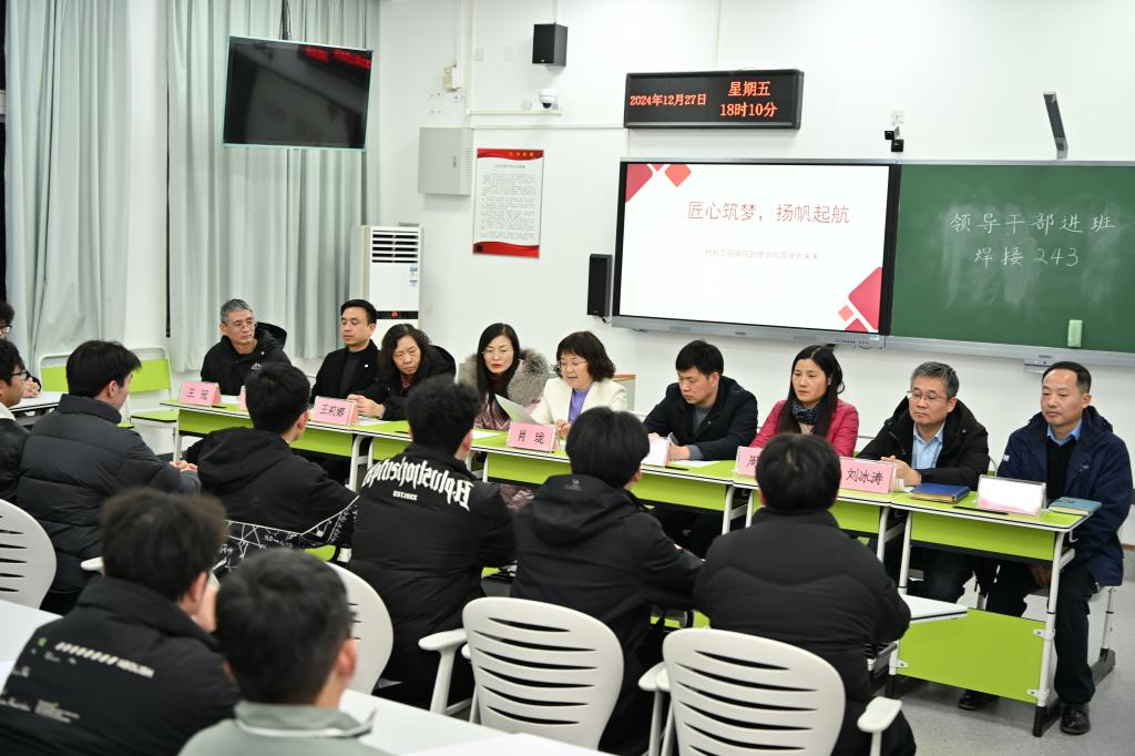 12月27日下午,校党委委员、副校长肖珑以“匠心筑梦,扬帆起航——材料工程学院的使命与未来”为题,为材料工程学院焊接243班学生讲授思政课,并以“学业导师”和“成长导师”身份参加主题班会。