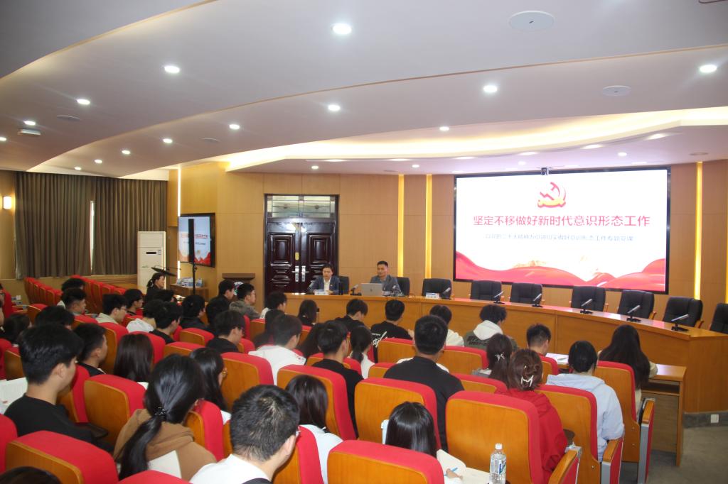 开班仪式后,经济管理学院党总支书记马金伟以《坚定不移做好新时代意识形态工作》为题作专题辅导讲座。(供稿:黄金磊;审稿:杨华)