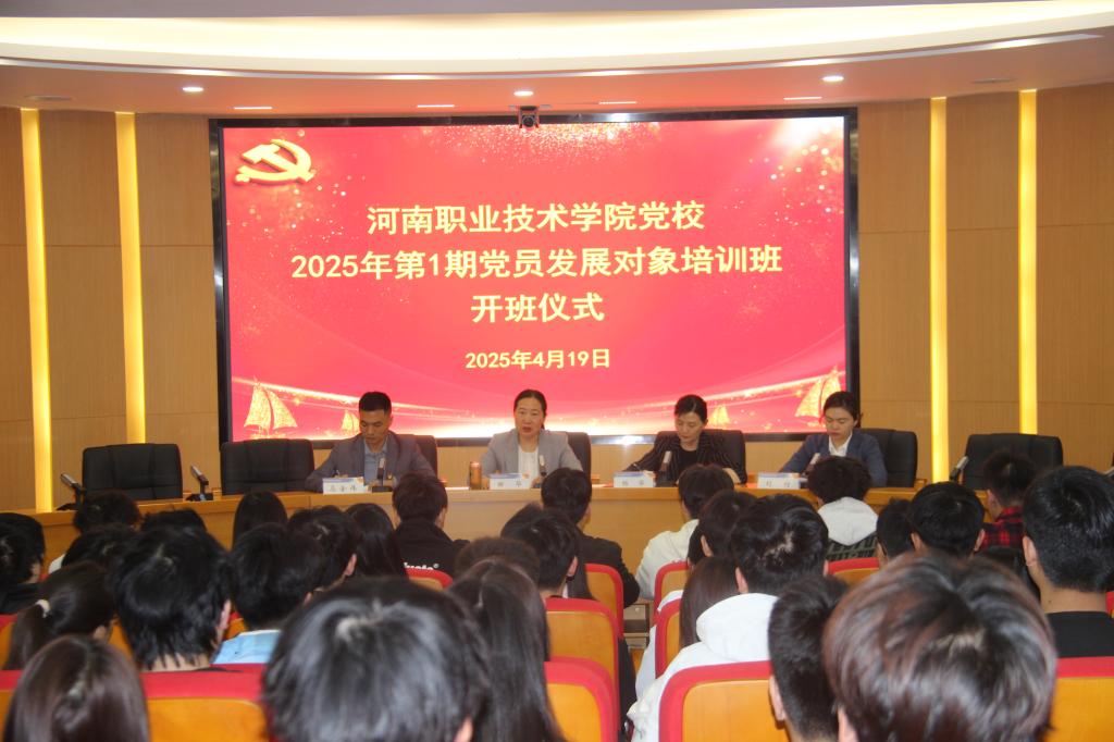 4月19日上午,河南职院党校2025年度第1期党员发展对象培训班开班。校党委副书记、工会主席田华出席开班仪式并作题为《逐光而行、不负韶华,蓄力赋能新征程》的动员讲话。90名师生党员发展对象参加开班仪式。开班仪式由校党委委员、组织部部长杨华主持。