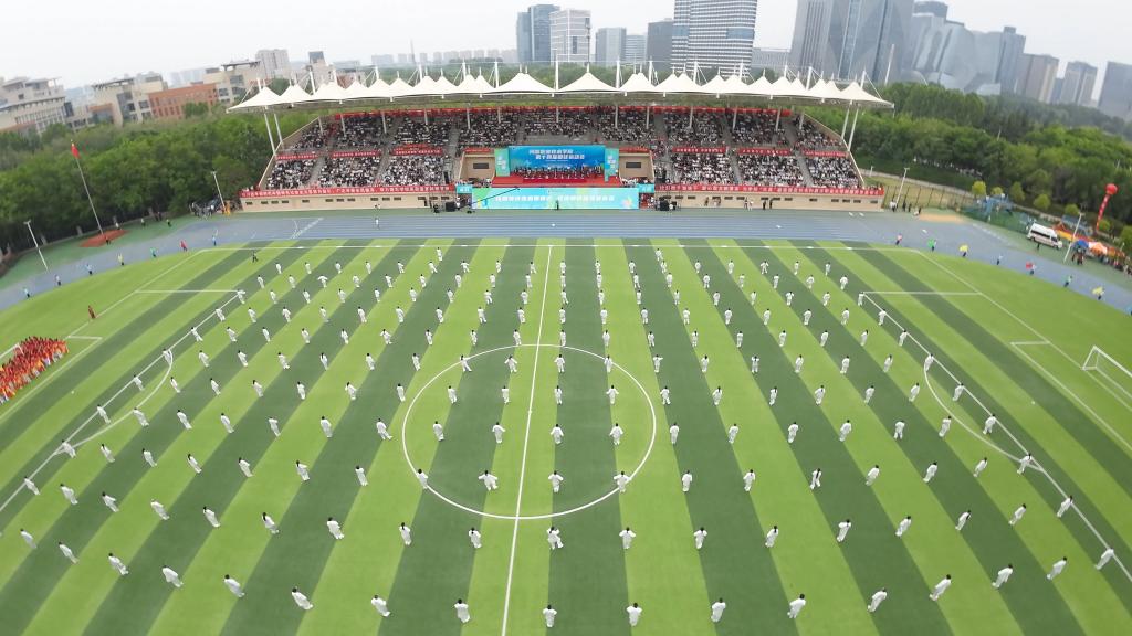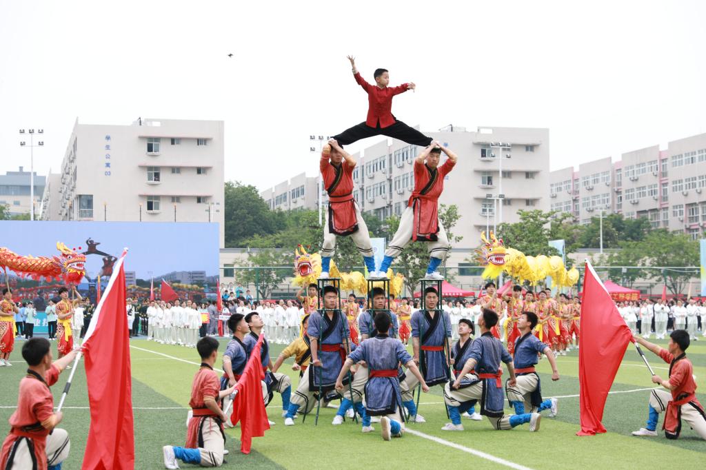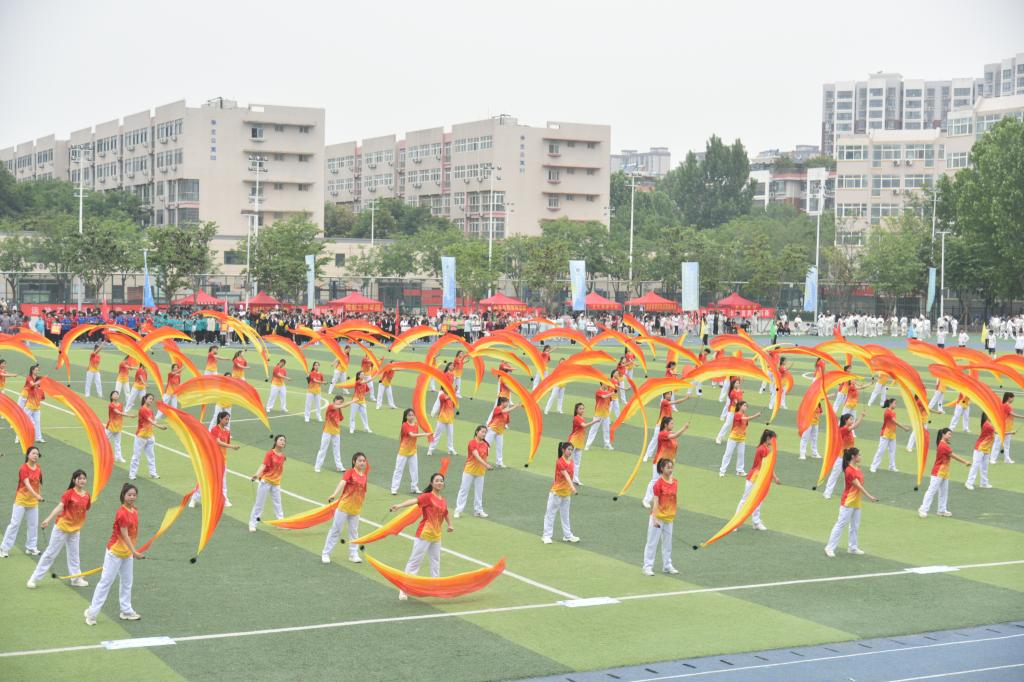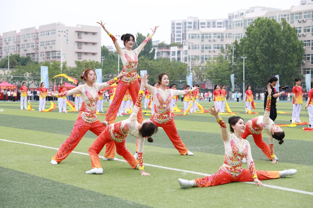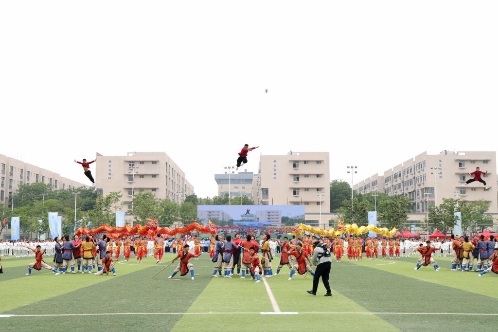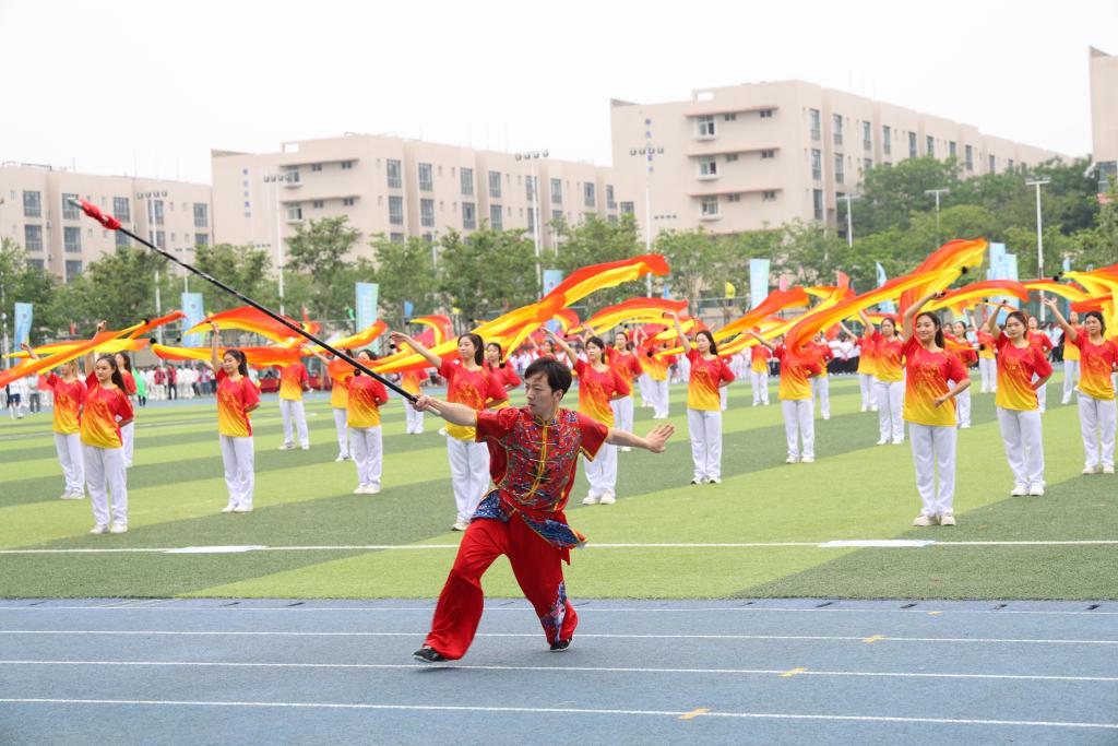 在开幕式展演环节,学校控制工程学院、数字创意与设计学院、武装部办公室参军意愿学生展演队、河南金龙舞狮团、登封市嵩山少林塔沟武术学校带来《龙狮共“武”》;教职工队伍表演了健身气功《八段锦》;音乐学院、校篮球队、足球队、健美操队表演了《哪吒闹海》和《我爱你中国》。师生节目活力四射、激情澎湃,赢得现场阵阵掌声。