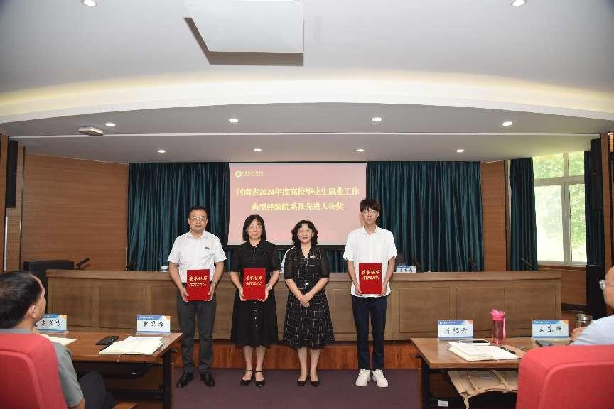 校党委副书记、校长夏新颜为河南省2024年度高校毕业生就业工作典型经验获奖院系和先进人物颁奖