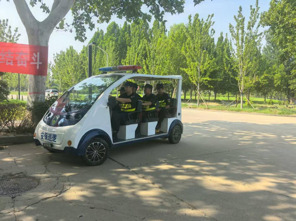 校门入口处,保卫人员严格核验、认真登记,筑起校园安全的第一道屏障;主干道上,巡逻车顶着烈日匀速行驶,他们仔细排查每一处角落,不放过任何安全隐患;重点区域旁,他们定点值守,黝黑的皮肤是烈日的“勋章”。