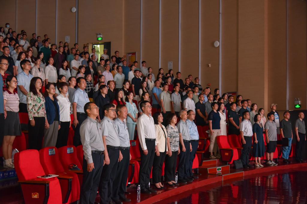 上午9时整,电视直播传来纪念中国人民抗日战争暨世界反法西斯战争胜利80周年大会盛况。80响礼炮响彻云霄,威武的护旗方阵步履铿锵。随着雄壮的《义勇军进行曲》奏响,大家全体起立,齐声高唱中华人民共和国国歌,共同注视着鲜艳夺目的五星红旗冉冉升起。随后,大家全神贯注、认真聆听习近平总书记发表重要讲话。习近平总书记的重要讲话立意高远、视野宏阔、思想深邃、内涵丰富,特别是“中华民族伟大复兴势不可挡!人类和平与发展的崇高事业必将胜利!”的庄严宣告,令人无比振奋,倍增奋进力量。历史承载过去,也启迪未来。大家深切感悟到,中华民族是不畏强暴、自立自强的伟大民族,中国共产党始终是中国人民和中华民族最可靠的主心骨,是时代巨浪中屹立不倒的中流砥柱。