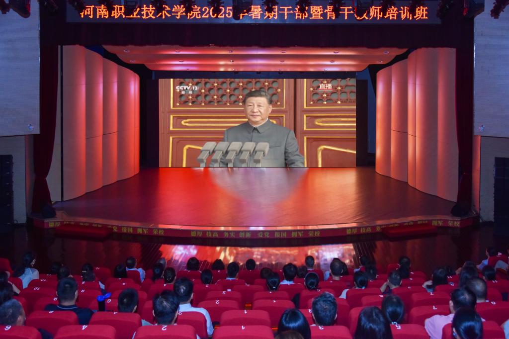 铭记历史、缅怀先烈、珍爱和平、开创未来。9月3日上午,纪念中国人民抗日战争暨世界反法西斯战争胜利80周年大会在北京天安门广场隆重举行。中共中央总书记、国家主席、中央军委主席习近平发表重要讲话并检阅部队。学校组织干部职工集中收看和学生自行收看大会实况直播,认真聆听习近平总书记发表的重要讲话,共同见证威武雄壮的阅兵仪式,共同接受一次深刻的思想洗礼和爱国主义教育。