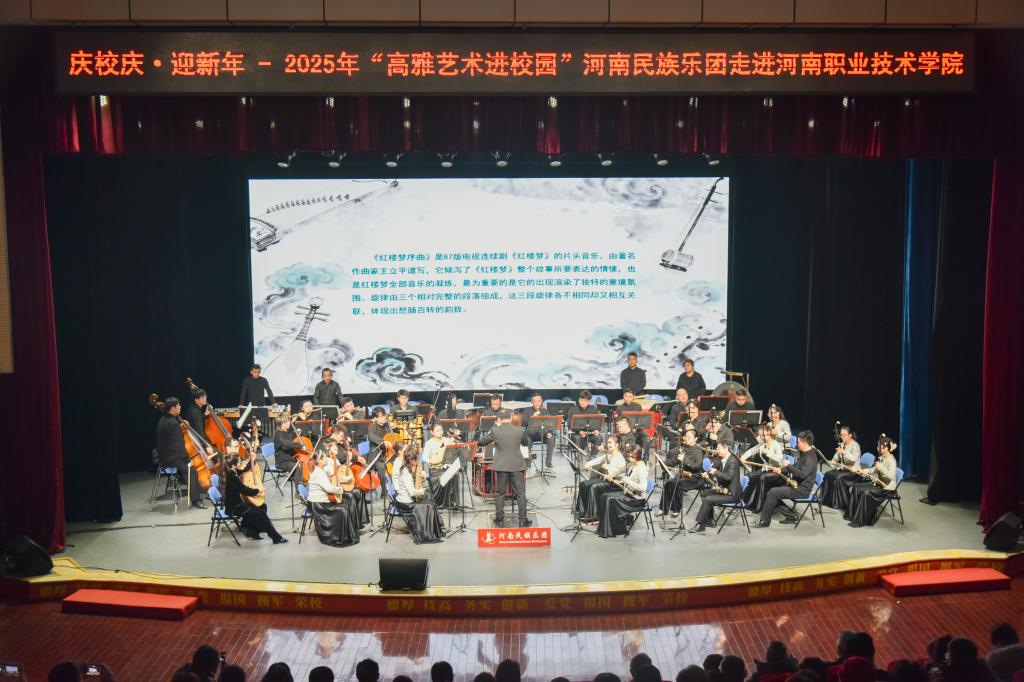 本次音乐会由河南省教育厅、河南省文化和旅游厅、河南省财政厅联合主办,河南歌舞演艺集团、河南民族乐团承办,特邀全国十大民族乐团——河南民族乐团倾情献艺。这支成立于1957年的顶尖乐团,历经近七十载磨砺,涌现出郝玉岐、桂习礼等一大批享誉全国的演奏家,创作并演奏了《百鸟朝凤》《中州韵》等众多经典曲目,多次为中外政府首脑献演,足迹遍布三十多个国家及港澳台地区,2023年获评文化和旅游部全国十大民族乐团称号。其坚持十七年的“高雅艺术进校园”活动,已成为传播传统文化、赋能青年成长的重要载体,此次更是为河职71周年校庆量身打造演出阵容,由著名指挥家杨明执棒,汇聚凌娅雯、魏雪珂、孙乾坤等一众优秀演奏家,以专业水准与深厚情怀致敬校庆。(供稿:靳兵;审稿:王璐)