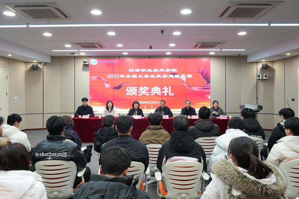 2025年12月31日,学校2025年全国大学生数学建模竞赛颁奖典礼在明知楼3110教室举行。校党委委员、副校长肖珑出席典礼并讲话。郑州大学数学与统计学院博士生导师耿献国应邀参加典礼并为学生作专题辅导。教务处、基础教学部、综合实训中心负责人及相关师生代表参加典礼。