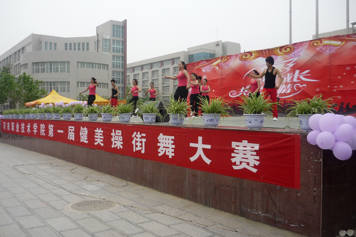 4月19日下午,由院团委主办,学生会、社团理事会承办的我院第一届健美操街舞大赛圆满落幕。院团委书记杨华、新乡职业技术学院团委副书记李德武亲临大赛现场,并邀请音乐学院和基础部的5位老师担当大赛评委。