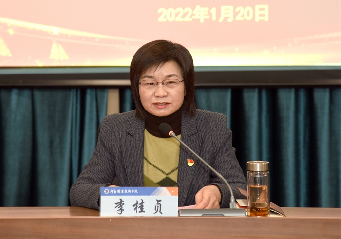 李桂贞指出,一年来,学校党委积极谋划、创新举措,全力推进党史学习教育走深走实。一是始终贯穿“一条主线”。校党委履行主体责任,将党史学习教育摆在首位。二是严格落实“两大举措”。坚持教育与惩治结合、激励与约束并重,将党史学习教育与能力作风建设一体推进。三是精准聚焦“三类群体”。突出领导干部带头作用,强化青年党员核心作用,发挥老党员示范作用;四是综合利用“四种载体”。将举办党史读书会、专题研讨交流、邀请专家辅导和现场体验教育四种载体紧密结合,推动党史学习教育取得新成效新进展;五是学史力行办实事。学校制定方案台账,聚焦民生,服务师生、面向社会,服务群众办好事办实事。
