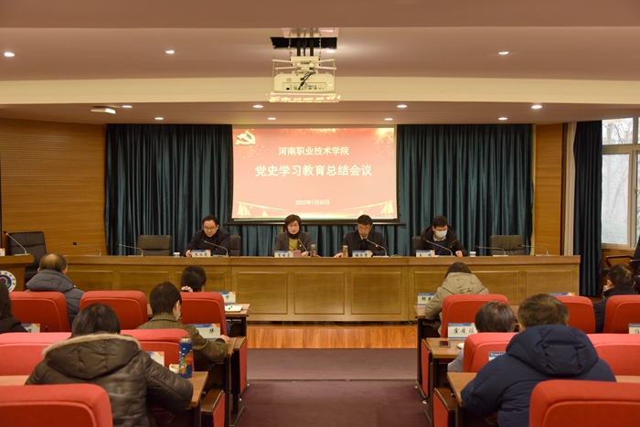 1月20日,河南职业技术学院召开党史学习教育总结会议,传达中央和省委党史学习教育总结会议精神,全面总结党史学习教育开展情况和工作成效,安排部署下一阶段党史学习教育成果巩固和深化工作。省纪委监委驻省人社厅纪检监察组和省人社厅机关党委相关同志到会指导。校党委书记李桂贞出席并作总结讲话,校长梅乐堂主持会议,全体校领导班子成员、中层正职干部参加会议。