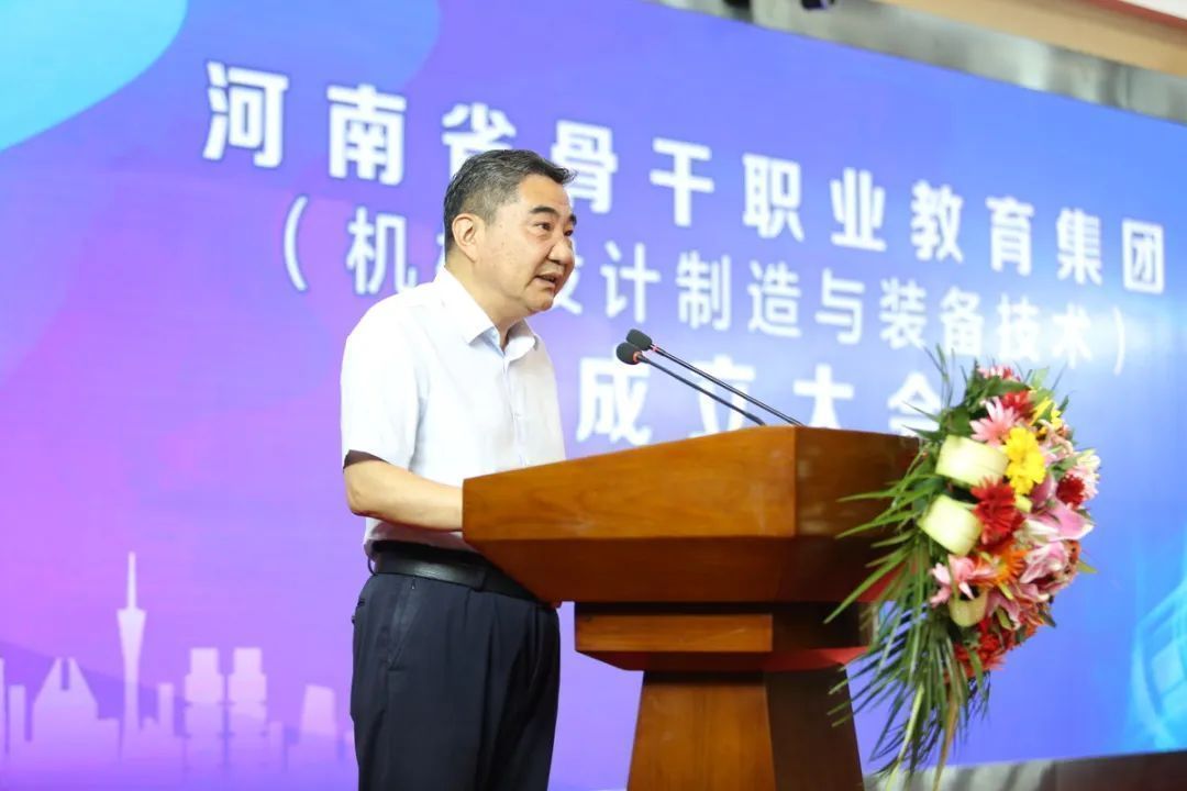 陈垠亭在致辞中指出,产教融合、校企合作是职业教育的基本办学模式,也是办好职业教育的关键所在,我省高度重视职业教育集团化办学,积极探索和实践集团化办学模式,推动职业院校结构与产业结构精准匹配,不断促进教育链、人才链与产业链、创新链的有效衔接。他希望河南机械设计制造与装备技术职业教育集团的成立,能够肩负起培养多样化人才、传承技术技能、促进就业创业、推动创新发展的重要职责,成为实体化运作的样板间,成为产教融合、校企合作的试验田,成为提升人才培养质量的孵化机,成为职业教育高质量发展的助推器,为我省职业教育高质量发展做出新的更大贡献。