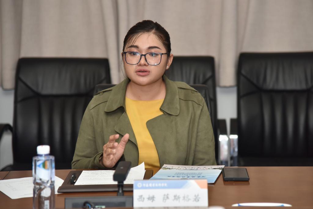 Him Southearoth简要介绍了柬埔寨职业教育现状及未来规划。她表示,中国先进的职业教育理念和人才培养模式值得柬埔寨借鉴,目前柬埔寨失业人口技能培训问题亟待解决,希望双方在新能源汽车、学前教育等专业领域开展合作,为当地培养更多高素质技术技能人才,提升当地的就业率。同时表示,愿帮助学校在柬埔寨建立海外培训中心,助力学校提升服务“一带一路”建设能力和国际化水平。