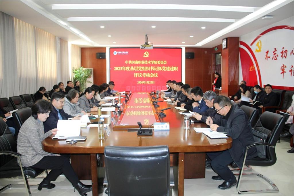 1月22日下午,河南职业技术学院召开2023年度党组织书记抓基层党建工作述职评议考核会议。校党委全体成员,各党总支书记、副书记,直属党支部书记,党政办、组织部、宣传部、纪检监察室、工会、团委、学工部、人事处等部门负责同志及各二级学院党支部书记代表共55人参加会议。会议由校党委书记李桂贞主持。