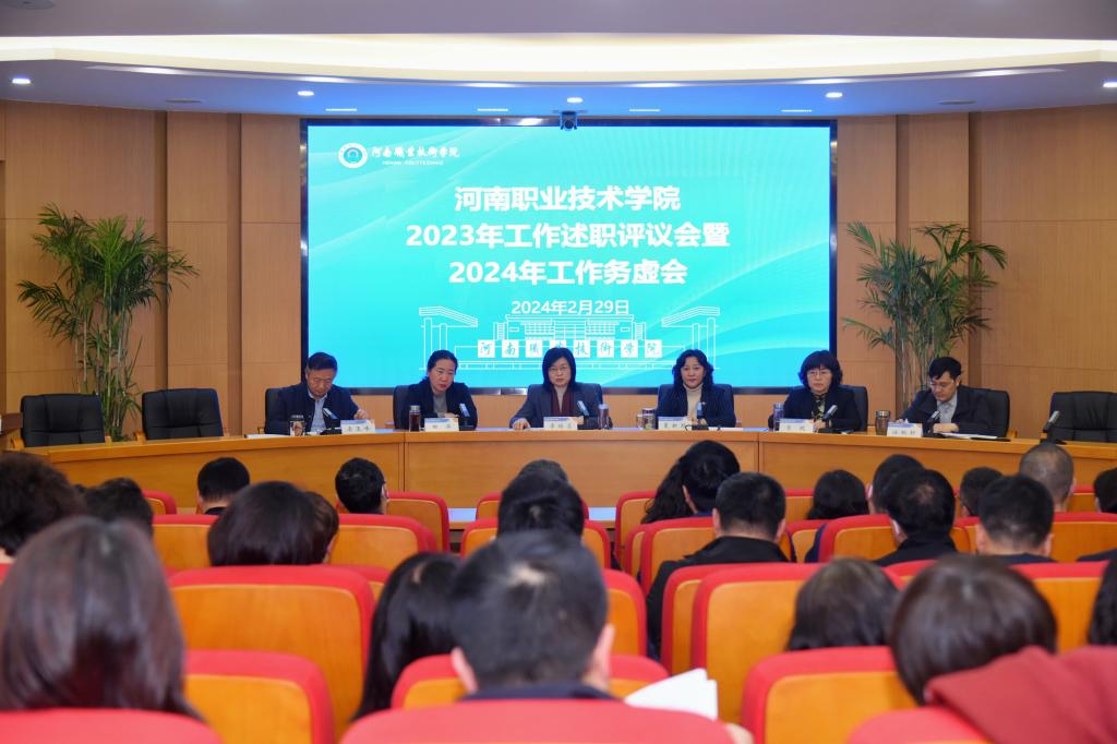 2月29日,河南职业技术学院召开2023年工作述职评议会暨2024年工作务虚会。会议听取了学校各部门主要负责同志的述职汇报,总结了2023年度的工作,并对2024年度工作进行了安排部署。学校领导班子成员、全体中层副职以上干部参加会议。会议由党委副书记、纪委书记田华主持。