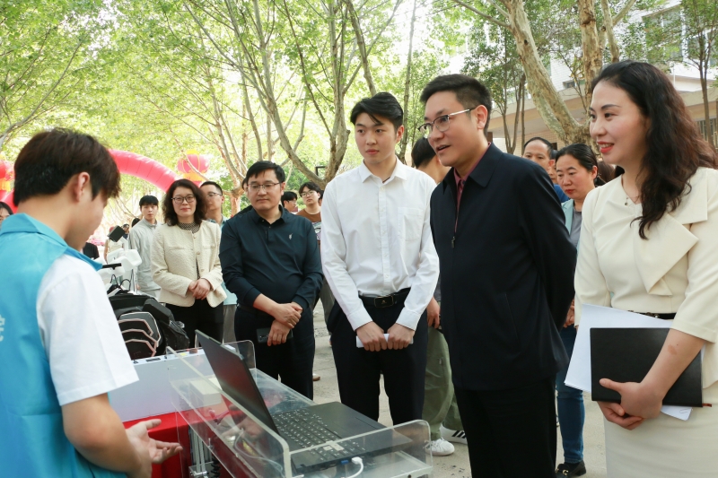 活动期间,校党委书记厉励,党委副书记、纪委书记田华,副校长任枫轩与宣传部、团委、学工部、教务处、科技开发处、创业学院等部门负责人一起参加现场巡展,并在“我们的河职我代言,争做文明河职人 ”签名墙上签下自己的姓名,倡议全体师生从我做起,从身边做起,从点滴做起,争做文明河职人,携手共建文明校园。随后,厉励一行走到每个展台前与参展同学进行亲切交流,他希望广大团员青年一要坚守爱党初心,将个人的理想追求融入党和人民的事业之中,感党恩,听党话,跟党走,切实担负起党和人民赋予的历史重任,争做有理想、敢担当、能吃苦、肯奋斗的时代新人;二要擦亮爱国主义鲜亮底色,将激昂的青春梦想融入伟大的中国梦中,将小我融入大我,以行动诠释爱国之情,用青春书写报国之志,争做德技并修的能工巧匠、大国工匠;三要牢树“爱校荣校,为校争光”理念,增强主人翁意识,为学校建设发展建言献策,贡献智慧和力量,在创新创业中增长才干、锐意创新、敢试敢闯、不惧挑战,在“挑战杯”的舞台上展现青春风采,争做开拓新领域的先锋,创造新业态的先锋,探索新模式的先锋,让创新成为青春远航的动力,让创业成为青春搏击的能量,让青春年华在为国家、为人民的奉献中焕发出绚丽光彩。