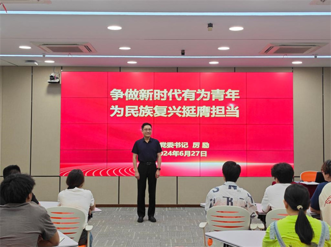 厉励用生动的语言和丰富的案例,从“生逢其时、无比荣幸;殷殷嘱托、寄予厚望;责无旁贷、勇挑重担;直面挑战、挺膺担当;踔厉奋发、绽放青春”五个方面展开讲述,叮嘱同学们“生逢盛世,当不负盛世;生逢其时,当奋斗其时”,要坚定理想信念,脚踏实地,行稳致远。同时鼓励同学们要感党恩、听党话、跟党走,勇担时代使命,既要做有理想、敢担当、能吃苦、肯奋斗的新时代好青年,又要做全面建成社会主义现代化强国的建设者、见证者、参与者和推动者。