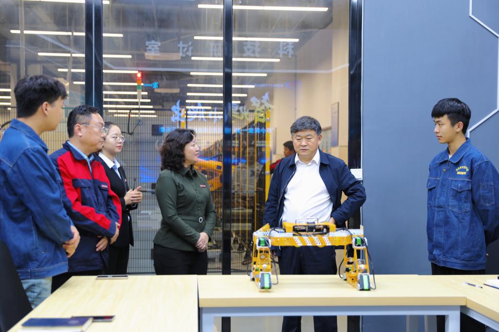 会后,王孝俊一行实地考察了智能制造学院、汽车与交通学院、数字创意与设计学院和文化旅游学院的实训中心以及实训教学情况。
