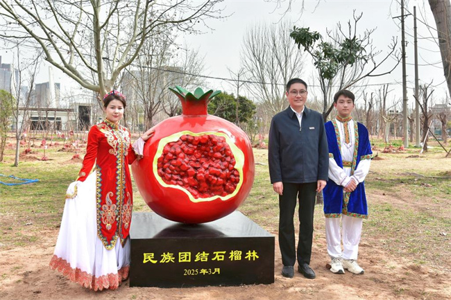 最后,厉励与师生代表共同为“民族团结石榴林”揭牌;师生们共同栽种了56棵石榴树,象征56个民族像石榴籽一样紧紧抱在一起,心连心、手挽手,共同构建中华民族大家庭。(隋纳新)
