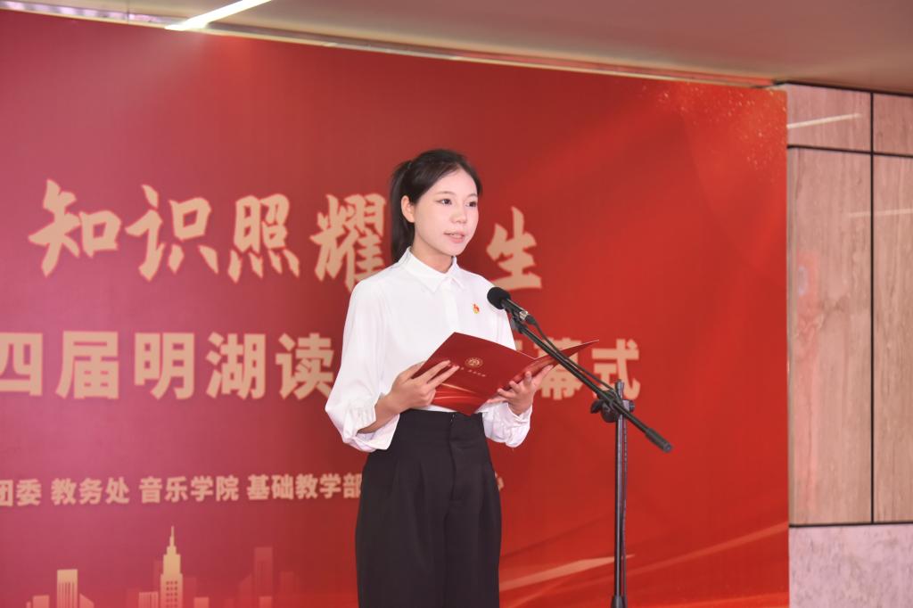 青马班学员李丁嘉作为学生代表发言,她以《读书是成长过程中的“催化剂”》为主题,号召同学们要珍惜时光,勤奋读书,让阅读成为生活的一部分,弘扬中华传统文化,提高自我修为。
