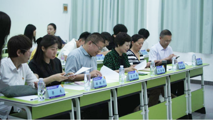 为深入贯彻落实习近平总书记关于学校思政课建设的重要指示精神,切实提升学校思政课教师的教学能力与水平,5月29日下午,河南职业技术学院于明知楼成功举办2025年度思想政治理论课教学技能“大练兵”活动。活动现场,18名思政课教师展开激烈角逐。此次活动邀请了河南财经政法大学原副校长朱金瑞等10位校外专家担任评委。活动开始前,校党委书记厉励会见了专家评委,双方进行了亲切交谈。校党委副书记、工会主席田华陪同参加会见 。
