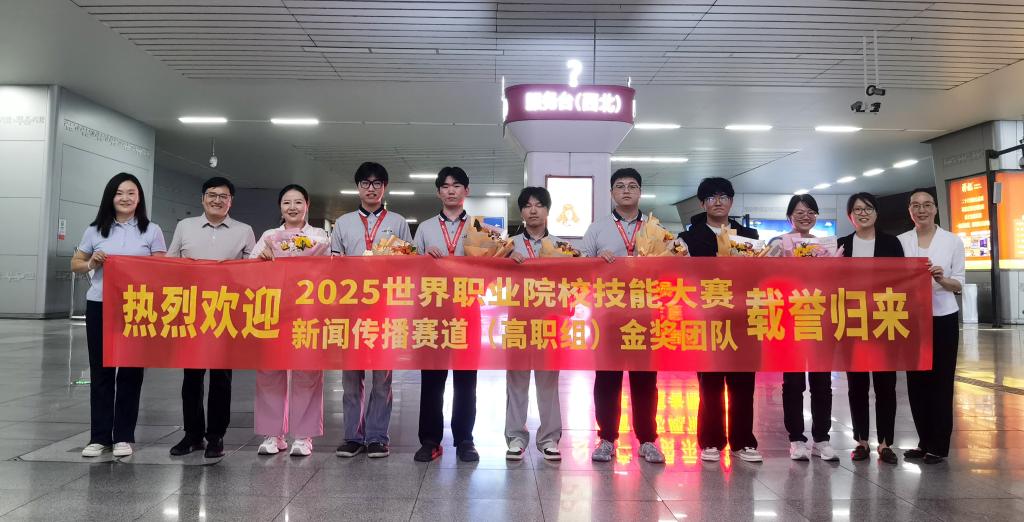 参赛团队载誉归来之际,校党委委员、副校长任枫轩专程前往高铁站迎接金奖团队。任枫轩对获奖师生在赛场上展现出的专业素养和拼搏精神给予高度赞扬。他表示,此次金奖的获得不仅是学校的荣耀,更是学校职业教育发展的重要成果,希望获奖师生以此为激励,继续深耕专业领域,为学校高质量发展再添新功。(供稿:李姗;审稿:徐海燕)