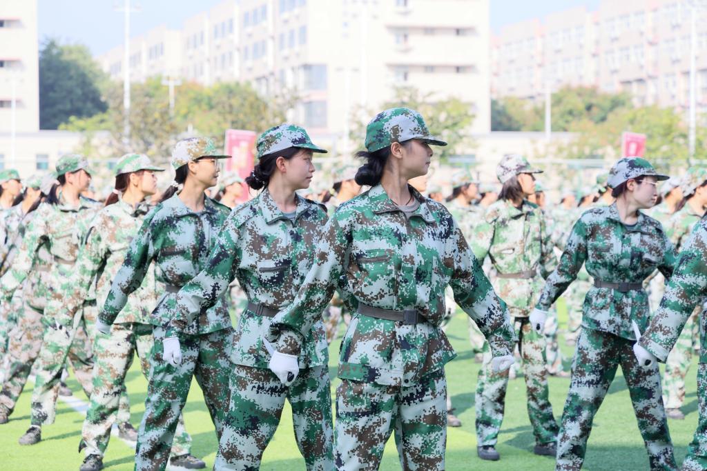 军训成果汇演分为分列式、数字方队、男子擒敌拳、女子匕首操和旗语操等五个部分。12个二级学院方队和男女劈枪方队阵容协调统一、口号嘹亮有力,他们依次走过主席台接受检阅。2400人的数字合唱方阵以身为笔,以行为墨,在军训场上精准呈现出壮丽的数字画卷和震撼人心的军歌声响;铁骨铮铮贯长松的男子擒敌拳;巾帼锋芒胜寒霜的女子匕首操;旗风猎猎作雷声的千人旗语操,多方位展示了2025级新生团结、拼搏、奋进的良好风貌,赢得全校师生的阵阵掌声。