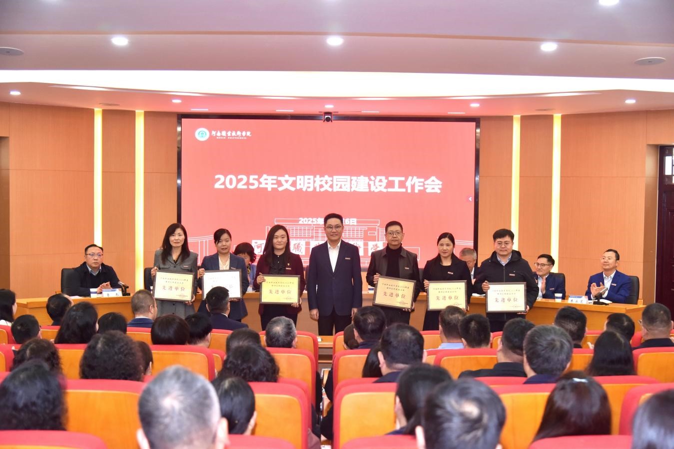 厉励作总结讲话,带领与会人员共同学习了习近平总书记关于精神文明建设的重要论述,充分肯定过去一年学校文明校园建设取得的成绩,深入分析当前工作存在的不足和差距,并就下一阶段学校文明校园建设工作提出三点要求:一要胸怀大局,深刻领会文明校园建设的时代内涵与战略意义。要将文明校园建设视为立德树人的“固本工程”、高质量发展的“引擎工程”、师生成长的“滋养工程”,通过优化育人环境,凝聚发展共识,将“文明”的抽象概念具象为推动教学改革的锐气、激励科研创新的勇气、管理服务中的人文暖气,为学校的跨越式与可持续发展,注入最为持久深沉的内生动力。二要靶向突破,精准把握文明校园建设的重点领域与提升策略。要着力从强化理论武装、突出立德树人、繁荣校园文化、优化校园环境、创新载体方式等五个方面发力,全力做好新时代文明校园建设工作,以系统思维、创新理念、务实举措,推动学校文明校园建设实现新突破,助力区域经济社会高质量发展。三要久久为功,全面构建责任体系与长效机制。要着力从强化顶层设计、激活基层单元、完善督查激励等三个方面,凝聚全校智慧和力量,加快构建权责清晰、协同高效、保障有力的责任体系,切实推动文明校园建设工作从“集中发力”向“常态长效”转变,努力营造“见贤思齐、崇德向善”的校园风尚,确保学校文明校园建设动力不减、常做常新。
