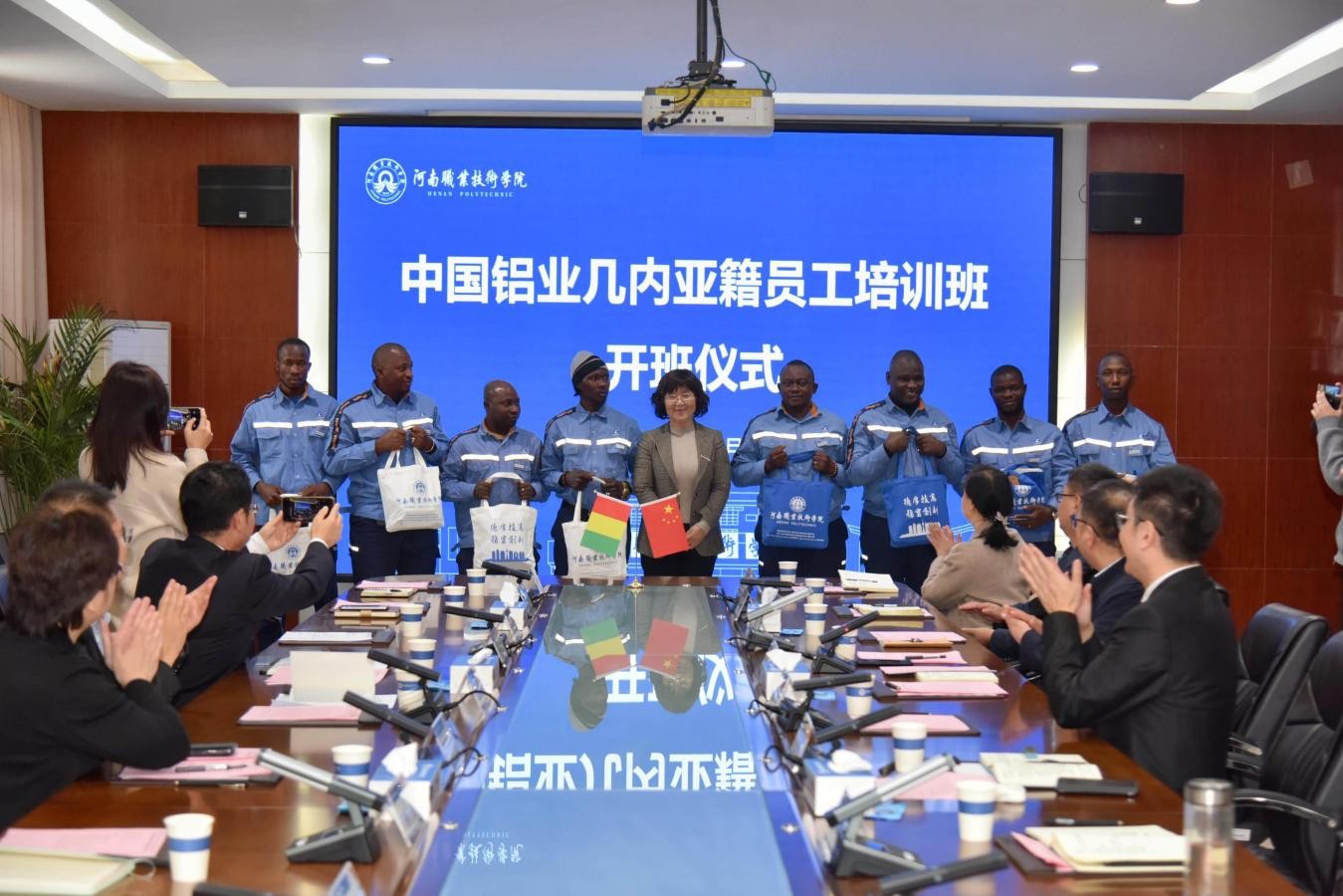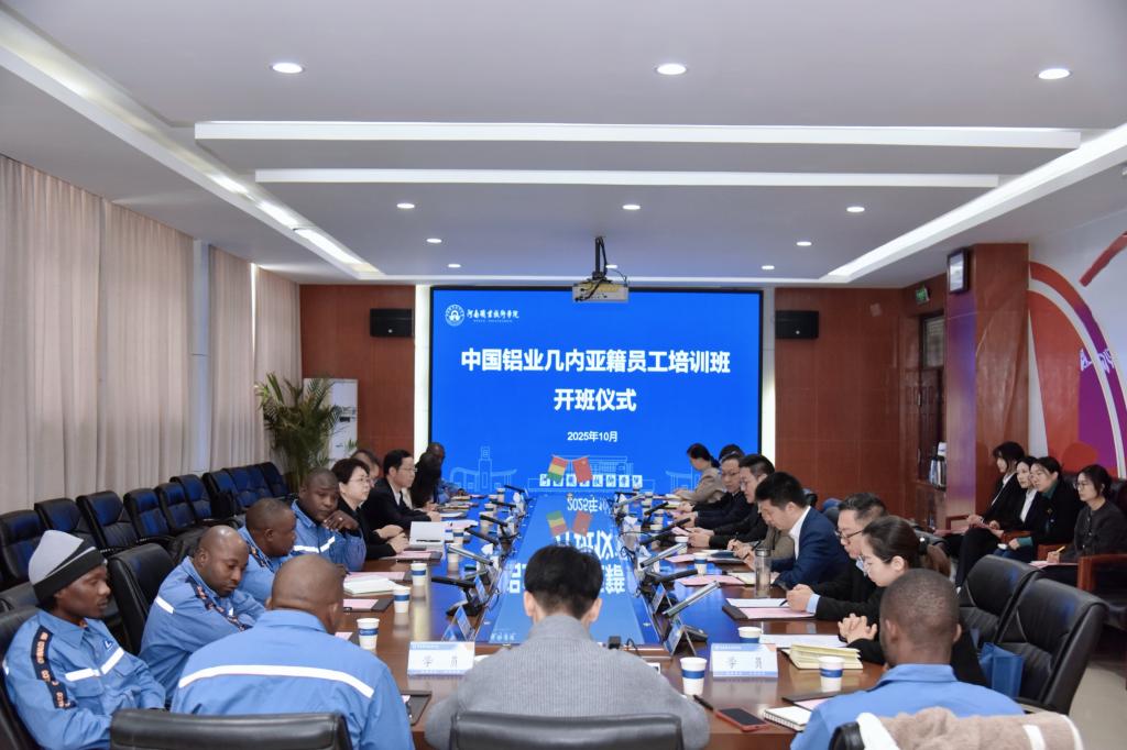 10月21日上午,河南职业技术学院2025年中国铝业几内亚籍员工培训项目开班仪式在勤业楼332会议室举行。校党委书记厉励作开班致辞,并为学员配发校牌。中国铝业股份有限公司人力资源部副总经理苏明明,有色金属工业人才中心主任助理、教育培训处处长赵丽霞等行业企业嘉宾应邀出席。校党委委员、副校长肖珑出席并向几内亚学员赠送学习礼包,表达美好的祝愿。国际合作交流处、材料工程学院、国际教育学院等相关部门负责同志和授课教师代表以及来自几内亚的全体学员参加仪式。开班仪式由校党委委员、副校长鲁冬主持。