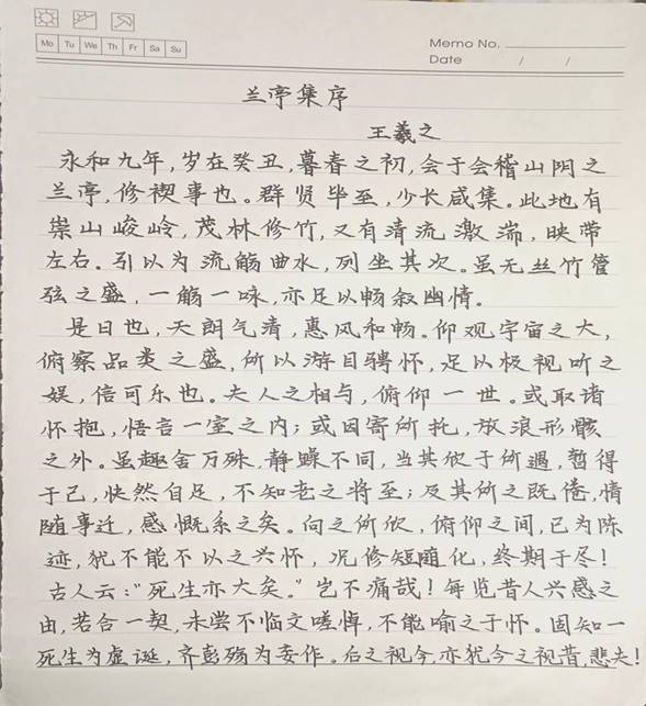 书法一等奖作品:《兰亭集序》电子与物联网 郭珂琳